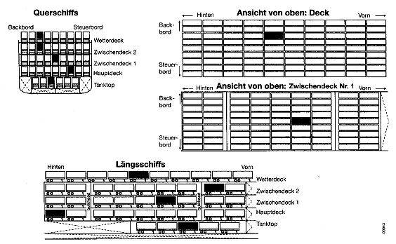| "Getrennt durch eine ganze Abteilung oder einen Laderaum von" 3 |