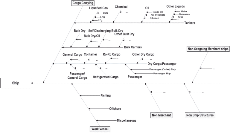 1 Im Hinblick auf eine einheitliche Auslegung werden die in Anlage VI Regel 2 von MARPOL festgelegten Schiffstypen den Schiffstypen der IHSF-Datenbank gegenübergestellt.
