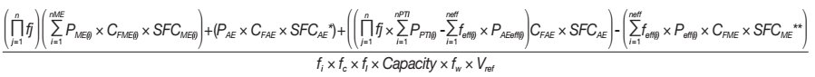 Der erreichte Energieeffizienz-Kennwert (Energy Efficiency Design Index = EEDI) für Schiffsneubauten ist ein Maß für die Energieeffizienz (g / t × nm) von Schiffen und wird mit folgender Formel berechnet: