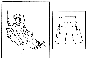 Bringen Sie den Patienten zu Bett und lagern Sie ihn in einer aufrechten Sitzposition. |