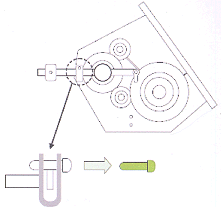 6.3.2.3.4 Falls sich der Bremshebel infolge Abriebs des Bremsbelages durch Winkelvergrößerung abgesenkt hat, ist der Winkel des Bremshebels durch Lösen der Schrauben, Einstellen des Winkels und wieder Anziehen der Schrauben zu korrigieren.