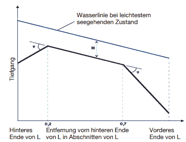 Anmerkung: Werte für dazwischenliegende Schiffslängen sind durch lineare Interpolation zu ermitteln.