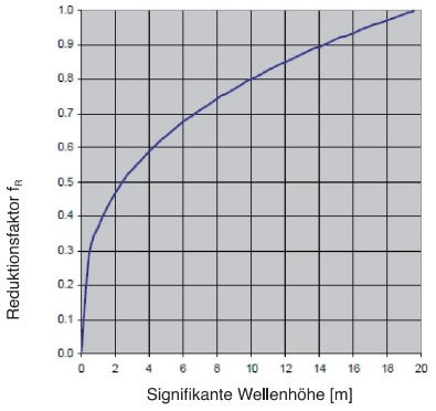 Abbildung 6.1 Kurve des Reduktionsfaktors als Funktion der zu erwartenden signifikanten Wellenhöhe