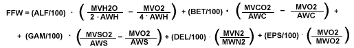 | ( 2-51) | FFW = 0.055583 × ALF - 0.000109 × BET - 0.000157 × GAM + 0.0080055 × DEL + 0.006998 × EPS |