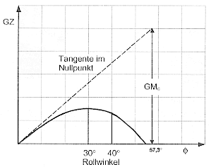 Vor allem schnelle Schiffe mit leistungsfähiger Steuereinrichtung benötigen ausreichende Anfangsstabilität, um zum Beispiel bei voller Geschwindigkeit ein Ausweichmanöver mit großer Ruderlage fahren zu können, ohne dabei eine gefährliche Krängung zu erleiden. Einzelheiten hierzu finden sich in 1.4.4.4 dieser Richtlinien.