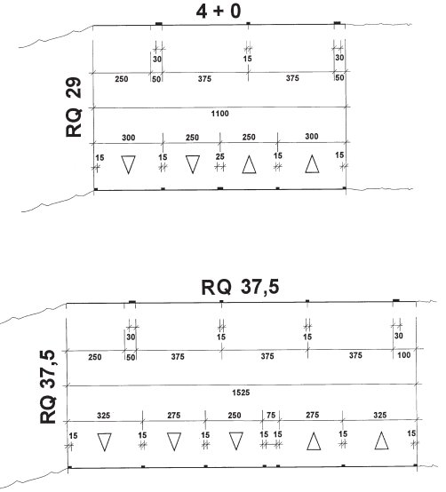 | 5 Fahrstreifen auf der Gegenfahrbahn | 5s+0 | 3,25 (3,00) +2,50 +2,50 +2,50 +3,25 (3,00) |