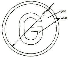 Buchstabe "G" hinsichtlich Schriftart und -größe gemäß DIN 1451, Teil 2, Ausgabe Februar 1986 (Bezugsquelle siehe § 73). Schriftgröße h = 125mm.