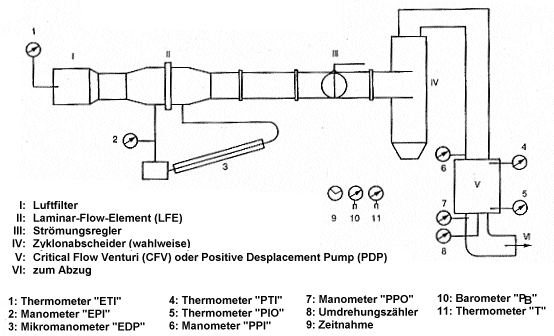 Die Luftdurchflußmenge QS an jedem Prüfpunkt wird nach den Angaben des Herstellers aus den Meßwerten des Durchflußmessers in m3/min ermittelt (Normalbedingungen).