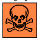 c Totenkopf mit gekreuzten Gebeinen in der oberen Hälfte auf orangefarbenem Grund