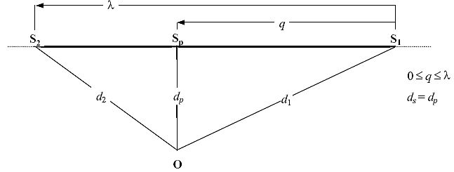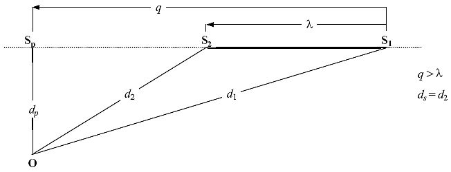 12) Obwohl der Begriff einer unendlich langen Flugbahn für die Definition des Ereignis-SchallexpositionspegelsLpAE eine Rolle spielt, ist er weniger relevant im Falle des Ereignis-MaximalpegelsLpAmax der vom abgestrahlten Lärm des Luftfahrzeugs an einer bestimmten Position oder nahe des kleinsten Vorbeiflugabstands bestimmt wird. Für die Modellierungszwecke wird der NPD-Abstandsparameter als Mindestabstand zwischen dem Immissionsort und dem Segment definiert.