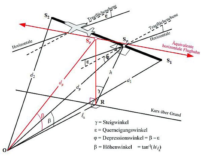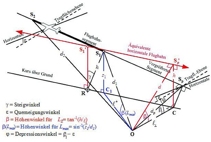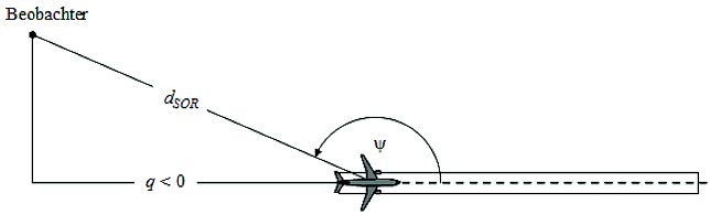 | ψ | Winkel zwischen Flugbahn und Luftfahrzeug-Immissionsort-Vektor. |