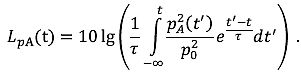 kann der mittlere quadratische Schalldruck in Abhängigkeit von der Zeit ausgedrückt werden, wobei die Schallausbreitungszeit unberücksichtigt bleibt: