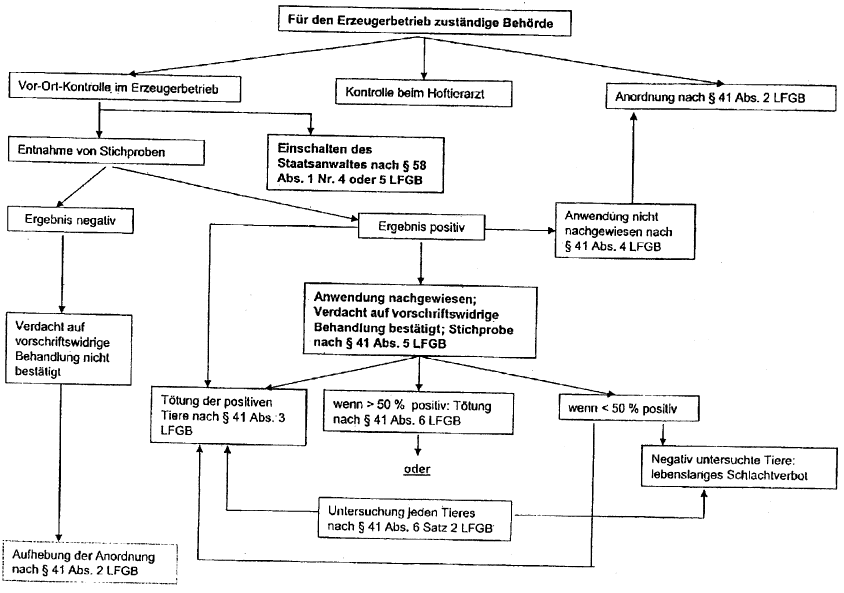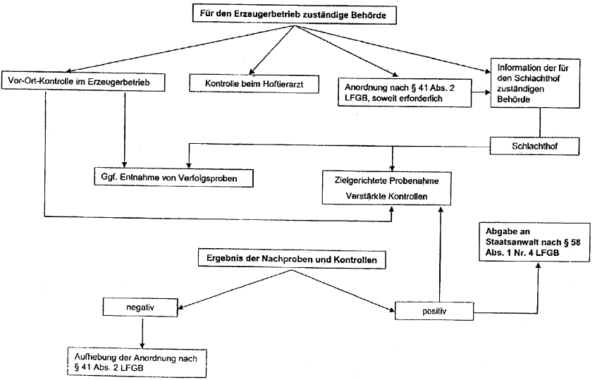 Im Übrigen richtet sich die Entnahme von Verfolgsproben, deren Untersuchung und die Bewertung der Untersuchungsergebnisse nach § 41 LFGB. Auf die schematische Darstellung in den Anhängen II und III wird hingewiesen.