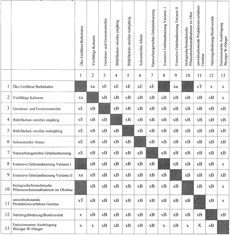 | xa | Kombination auf derselben Fläche möglich mit abgesenktem Fördersatz für Öko |