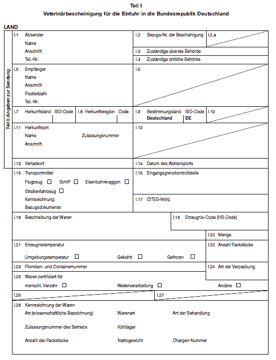 zu transportieren und ihnen das Gemeinsame Veterinärdokument für die Einfuhr im Original beizufügen.