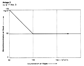 (2) Bei Altanlagen für flüssige Brennstoffe dürfen die staubförmigen Emissionen im Abgas die sich aus dem Diagramm ergebende Massenkonzentration nicht überschreiten.