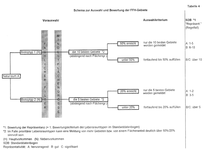 Unter Beachtung der naturräumlich differenzierten Verbreitungsmuster der einzelnen Lebensraumtypen (vgl. BfN-Handbuch 1998) wurde das Auswahlverfahren weiter konkretisiert. Folgende Bewertungsschritte werden dabei durchlaufen:
