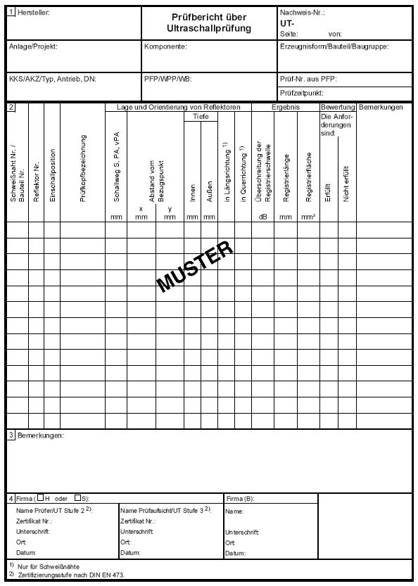 Formblatt A-15b: Prüfbericht über Ultraschallprüfung