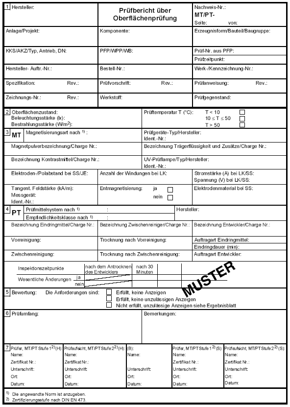 Formblatt A-16: Prüfbericht über Oberflächenprüfung