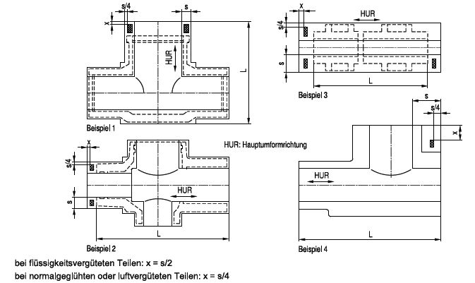 (3) Die Gießtechnik ist nach den Grundsätzen der gelenkten Erstarrung auszulegen. Bei Gussstücken mit Nennweiten gleich oder größer als 200 mm ist die Anschnitt- und Speisertechnik anhand der Sättigungsberechnung und anhand von Zeichnungen zu erläutern, aus denen die Lage der Speiser und der Speisungsbereiche sowie die Probenlage hervorgehen. Die Beschreibung der Gießtechnik ist für jedes Gussmodell der Zwischenablage (interne Herstellerdokumentation) zum Verbleib beim Hersteller beizufügen.