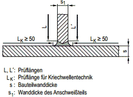 UT ferritischer Anschweißnähte (HV, DHV) s1< 15 mm und Länge > 100 mm | ||||