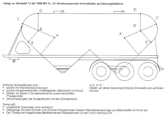 7.3 00aIm Rahmen der wiederkehrenden inneren Prüfungen sind stichprobenweise zerstörungsfreie Prüfungen, z.B. Oberflächenrißprüfung an hochbeanspruchten Schweißnähten - siehe Anlage - durchzuführen.