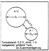 | *** | Tankgruppenabstände, zu ermitteln nach Diagramm 1, maßgebend: größter D eines benachbarten a I, a II- oder B-Tanks |