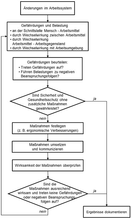 (2) Das Arbeitssystem stellt somit ein Modell dar, das die Wechselwirkungen der Systemelemente berücksichtigt, um systematisch Gefährdungen der Beschäftigten und die Belastung, die auf die Beschäftigten einwirkt, zu erheben und zielgerichtet Maßnahmen abzuleiten.