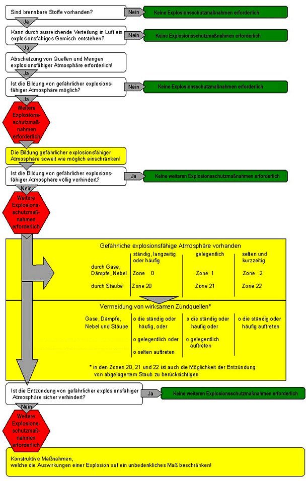 Bild 1: Abfrageschema zum Erkennen und Vermeiden von Explosionsgefährdungen