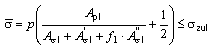 5.2.2. Mit einer druckbelasteten FlächeAp (einfach schraffiert) sowie mit den tragenden QuerschnittsflächenAσ, (kreuzschraffiert) lautet die Festigkeitsbedingung für den Bereich I, Bild 9,
