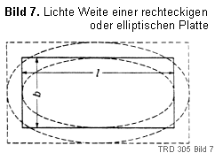 | l | lange Seite rechteckiger Platten bzw. lange Achse elliptischer Platten (Bild 7) oder lange Seite von Rechtecken, die innerhalb von freien unversteiften Flächen verankerter ebener Wandungen eingezeichnet werden können (Bilder 8a und 8b) | mm |
