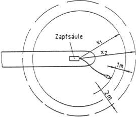 Wirkbereich ist der vom Zapfventil in Arbeitshöhe horizontal betriebsmäßig erreichbare Bereich zuzüglich 1 m. Abweichend von Satz 1 beträgt bei Flüssiggastankstellen, auf denen nicht ausschließlich Treibgastanks mit automatischer Füllstandsbegrenzung gefüllt werden, das zuzügliche Maß 2 m (s. Bild 1).