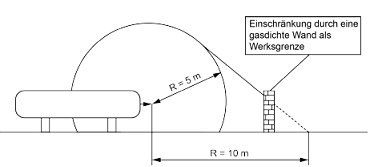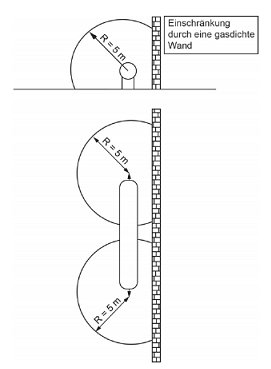 (8) Bei ortsfesten Druckanlagen für Gase schwerer als Luft oder tiefgekühlt verflüssigte Gase dürfen 5 m um betriebsbedingte Freisetzungsstellen keine