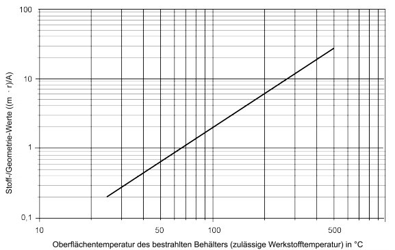 (1) Der Schutzabstand zwischen Brandlast und ortsfestem Druckgasbehälter in Abhängigkeit von der zulässigen Werkstofftemperatur ergibt sich aus Abbildung 5.