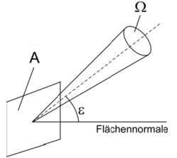 (1) Die Bestrahlungsstärke E (oder Leistungsdichte) ist die auf eine Fläche fallende Strahlungsleistung dP je Flächeneinheit dA. Sie ist gegeben durch den Zusammenhang: