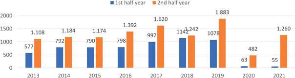 | 2012 - 2021 | 2012 | 2013 | 2014 | 2015 | 2016 | 2017 | 2018 | 2019 | 2020 | 2021* | TOTAL/ GESAMT/ TOTAAL | % ” 2012/2021 | ||