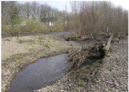 Abb. 55: Totholzeinbau ohne Sicherung in naturnahem Laufabschnitt des Flechbaches