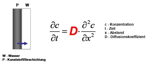 Der Stoffübergang (Migration) aus organischen Materialien in das Trinkwasser ist durch den Stofftransport im organischen Material beschränkt. Der Stofftransport und damit der Stoffübergang kann mit Hilfe des 2. Fickäschen Gesetzes (differentielle Stoffbilanz) abgeschätzt werden.